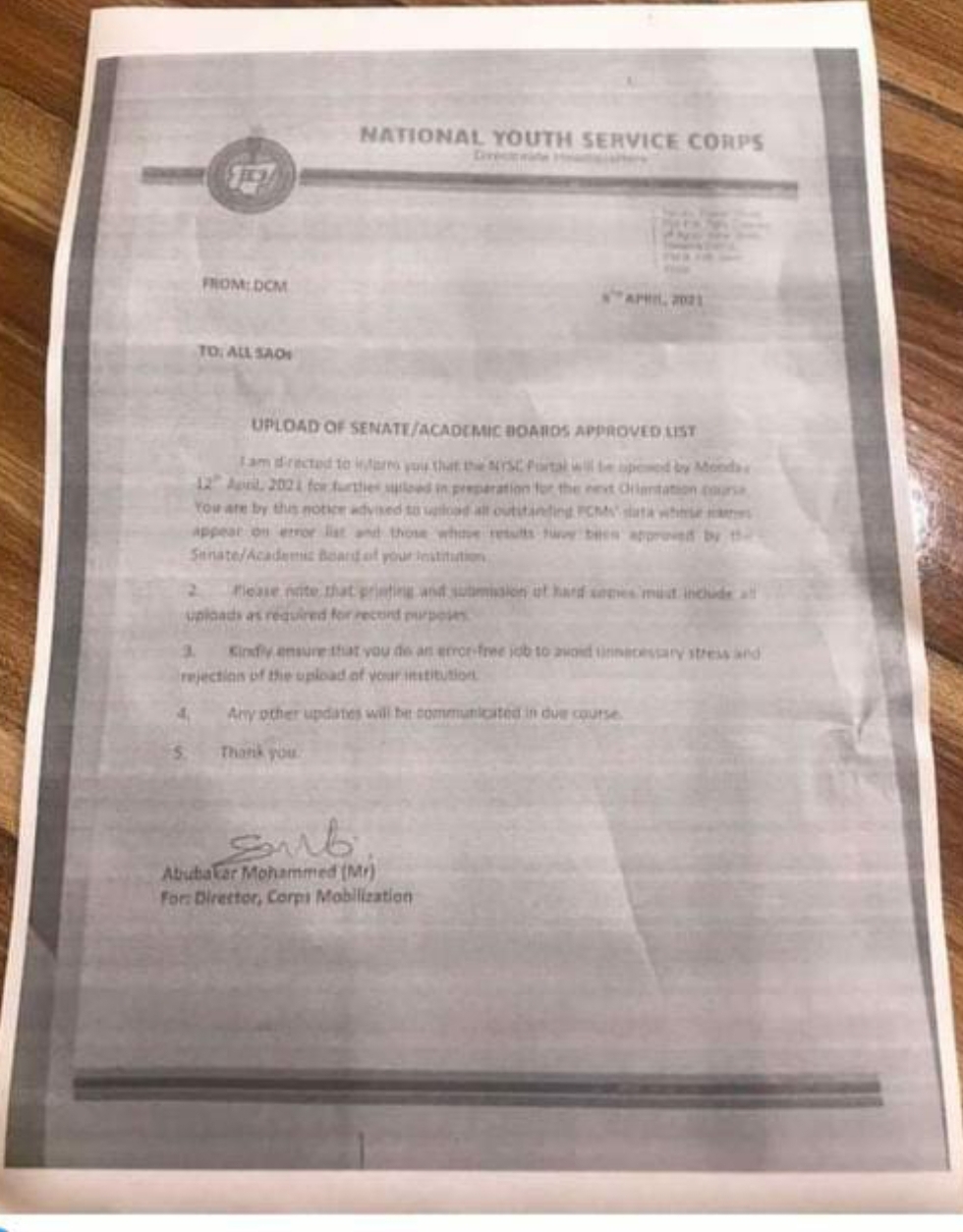 Goodnews as the NYSC management set to open the NYSC Portal on Monday. This news broke out through a circular that has been going viral on social media and I will show you the picture of the circular below. See the picture: