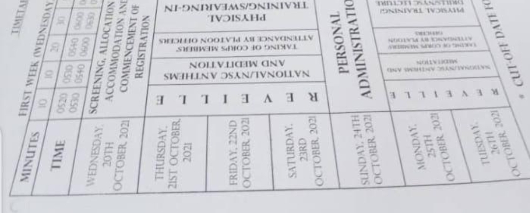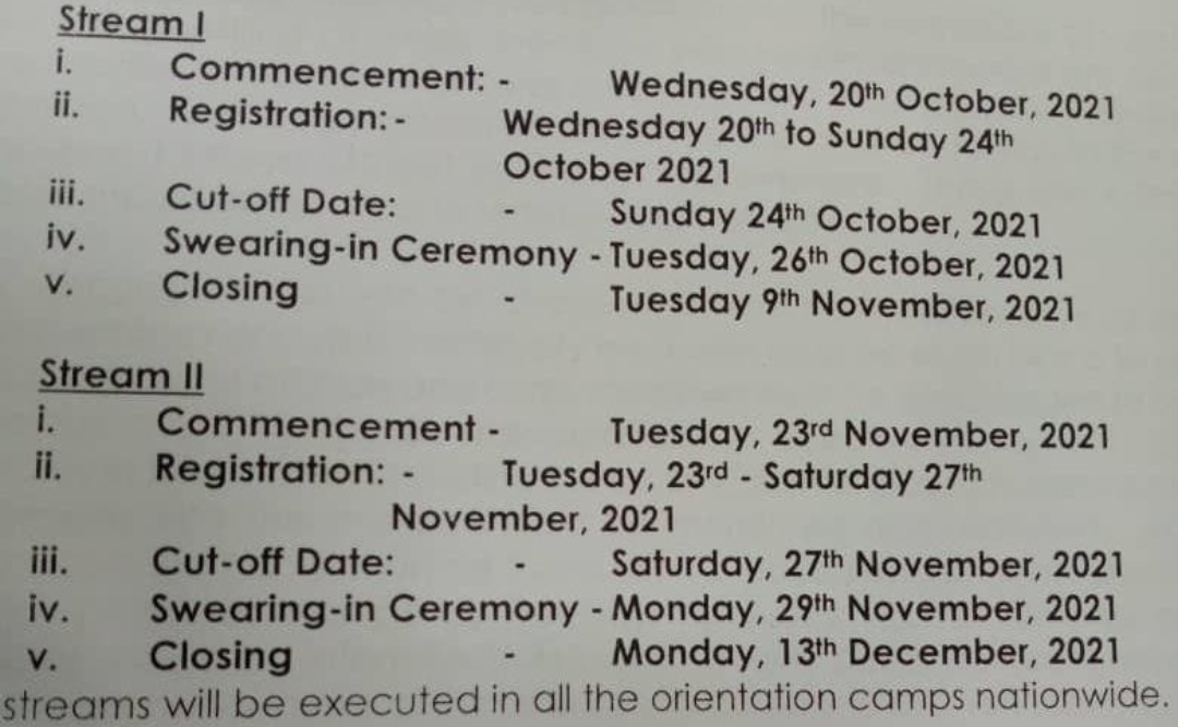 Registration: Wednesday, 24″ – Sunday, 28″ November, 2021 Cut – Off Date: Midnight Sunday, 28″ November, 2021 Swearing-in Tuesday 30” November, 2021